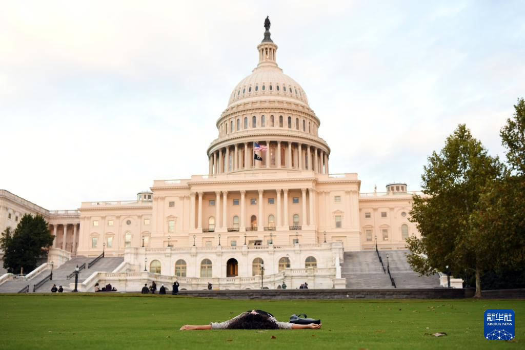 15日10月,华盛顿正在美国,日落时分的华盛顿怀想碑人们正在国会大厦前观望。者 李睿 新华社记摄