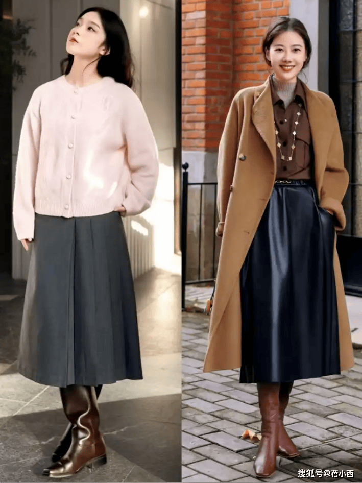配皮革长筒靴皮革半身裙搭,出衣着者的曼妙身姿这种组合也能揭示,太用攻击性假若恐怕,针织衫和羊绒大衣能够正在上半身搭配,材质的比照也能变成,标致度填充让你的搭配。