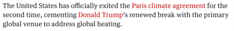 1月27日本地时刻,协定》正式生效美国退出《巴黎。第二次退出该协定这仍旧是美国当局。此对亚星会员平台》不日刊文称英国《卫报,背弃环球天色管辖系统这标识着特朗普再度。